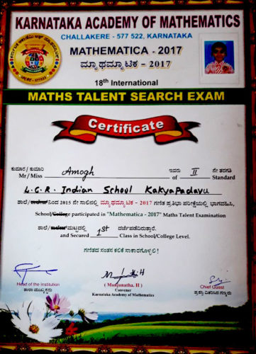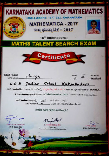 ಮಾ॥ ಅಮೋಘ ಮತ್ತು ಮಾ॥ ಅನಘ ಸಹೋದರರು ಗಣಿತ ಪ್ರತಿಭಾ ಪರೀಕ್ಷೆ ಯಲ್ಲಿ ಕ್ರಮವಾಗಿ ಶಾಲೆಯಲ್ಲಿ ಹಾಗೂ ಜಿಲ್ಲಾ ಮಟ್ಟದಲ್ಲಿ ಉತ್ತಮ ಸಾಧನೆ ಮಾಡಿ ಸಮಾಜಕ್ಕೆ ಮತ್ತು ಶಾಲೆಗೆ ಕೀರ್ತಿ ತಂದಿದ್ದಾರೆ. ಈ ಸಹೋದರರ ಸಾಧನೆಗೆ ಅನೇಕ ಬಂಧುಗಳ, ಗುರುಗಳ ಮತ್ತು ಗಣ್ಯರ ಅಭಿನಂದನೆಗಳ ಮಹಾಪೂರವೇ ಹರಿದುಬಂದಿದೆ.