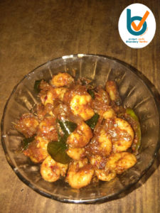 ನಂತರ ಒಂದು ಬಾಣಲೆಯನ್ನು ಬಿಸಿಮಾಡಿ ಅದಕ್ಕೆ ತುಪ್ಪ ಹಾಕಿ ಅದು ಕಾದ ನಂತರ ಕರಿಬೇವು,ಹಸಿಮೆಣಸು,ಈರುಳ್ಳಿ ಹಾಕಿ ಚೆನ್ನಾಗಿ ಪ್ರೈ ಮಾಡಬೇಕು,ನಂತರ ಇದಕ್ಕೆ ಕಲಸಿಟ್ಟ ಸೀಗಡಿ ಹಾಕಿ 1/2 ಲೋಟ ನೀರು,ಹಾಗೇ ರುಚಿಗೆ ತಕ್ಕಷ್ಟು ಉಪ್ಪು ಹಾಕಿ 6-8 ನಿಮಿಷ ಬೇಯಲು ಬಿಡಿ,ನಂತರ 1 ಚಮಚ ಖಾರದ ಪುಡಿ,ದನಿಯಾ ಪುಡಿ,1/2 ಚಮಚ ಗರಂಮಸಾಲ ಪುಡಿ ಹಾಕಿ ಚೆನ್ನಾಗಿ ಪ್ರೈ ಮಾಡಿದರೇ(ಬೇಕಾದಲ್ಲಿ ಕೊನೆಗೆ ನಿಂಬೆರಸ ಹಿಂಡಬಹುದು)ಸೀಗಡಿ ಪ್ರೈ ಸವಿಯಲು ಸಿದ್ದ.